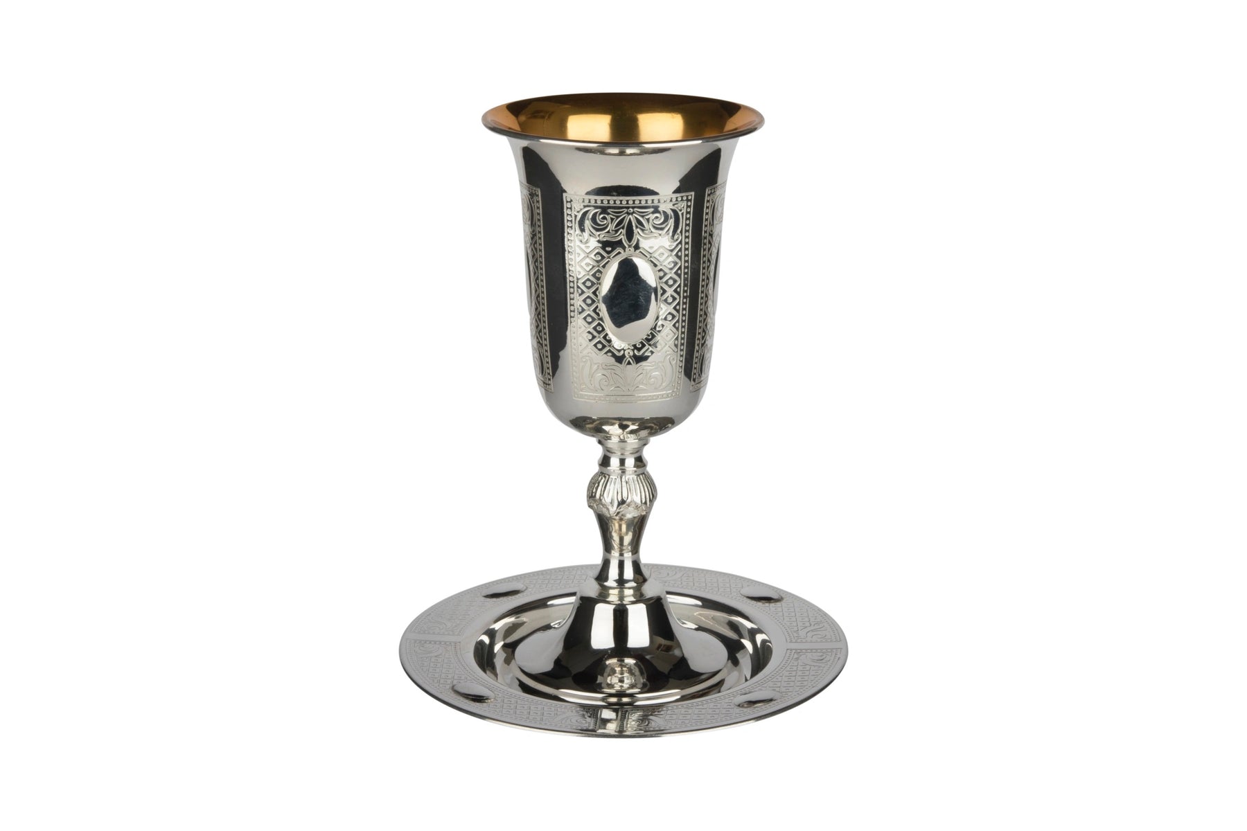 A&M Judaica Silver Kos Eliyahu With Tray 925