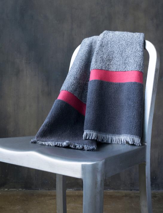 European Art Melange Hand Towel Charcoal Grey, Pink Trim