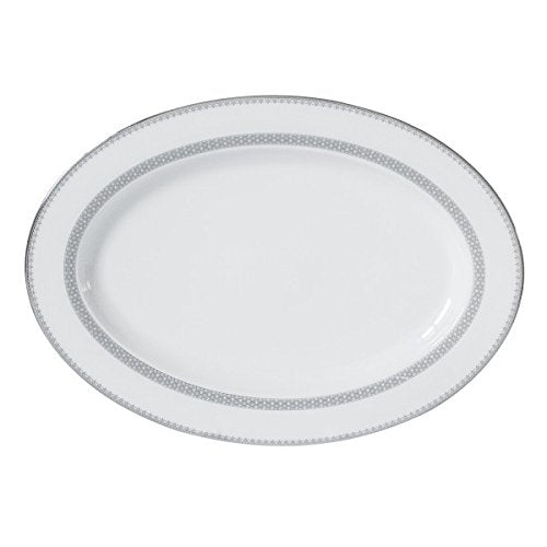 Serve guests in beautiful style with this Empire Platine platter. It features a stunning intricate design that will look fantastic on any table setting with its gorgeous silver and white color scheme. Made of fine porcelain, this beautiful bold pattern with bands of silver will last for many meals to come, whether you choose it for everyday use or for entertaining guests. Like the finest writing parchment, this stunning pattern will enhance the look of anything you place on it.