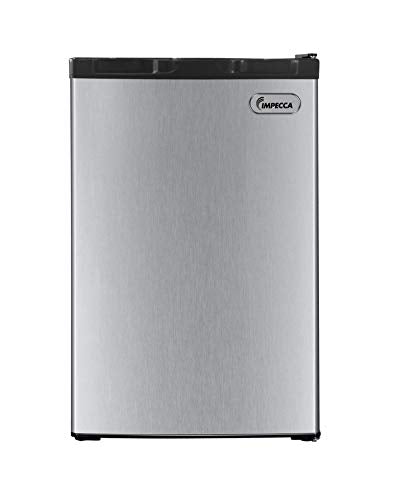 Impecca Compact Refrigerator Reversible Door with Glass Shelves Classic Refrigerator, Single Door Mini Fridge with Soft-Freezer, 3.3 Cubic Feet, Stainless