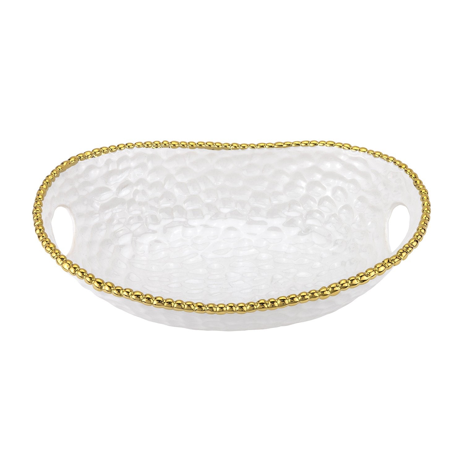 Joseph Sedgh Pebbled White Ceramic Serving Bowl with Gold Bead Rim