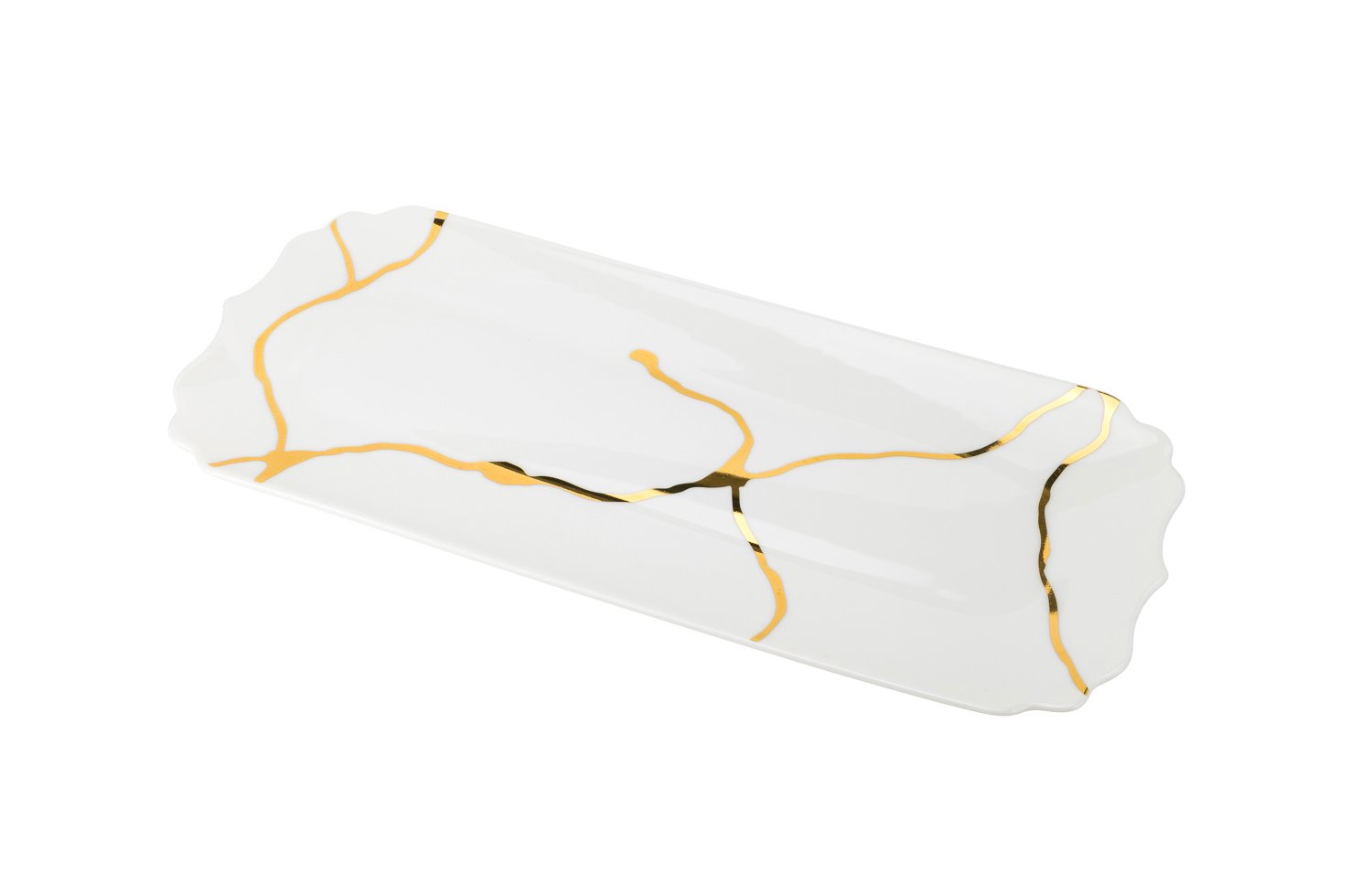 Joseph Sedgh Storm Serving Tray Super White Porcelain with Gold Design