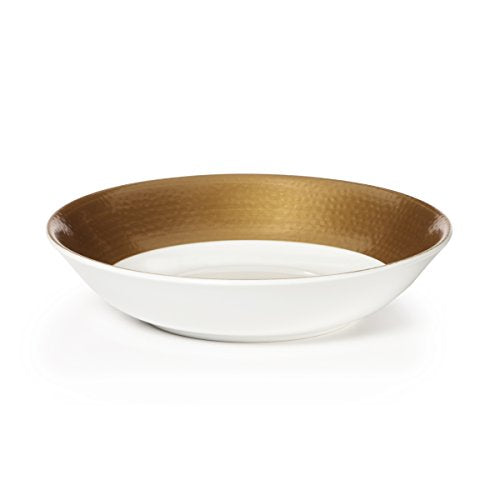 Hammersmith Gold transforms your tabletop into a sophisticated, elegant platform for entertaining. Simple yet striking bands of gold encircle a clean white center. The contrast is enhanced by the unique hammered design on the lush gold rims. Crafted of porcelain. Microwave and dishwasher safe. Better have plenty of these hard-working bowls on hand...you'll use them at every meal! From steaming oatmeal, to tangy soups to chef salads to scrumptious sundaes or pie al a mode, this bowl serves everything in style. Soup bowl measures 8-1/4 inch diameter x 1-7/8 inch high. .