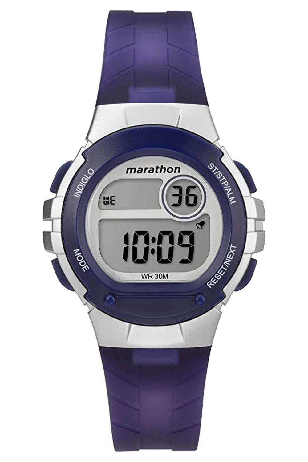 - Every day is a marathon and you can rely on this purple and gray digital sports watch from Timex.
