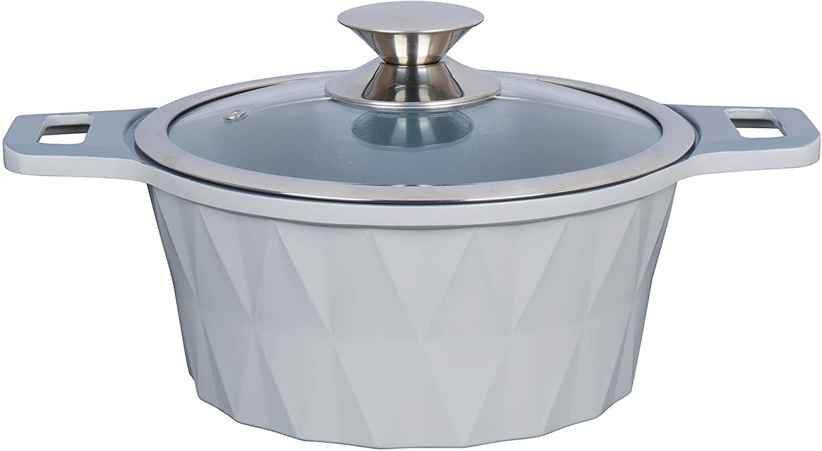 Imperial Ceramic Coated Stockpot, (3QT, 7QT, 10QT, 4.5QT),( Blue, Silver) Diamond Cut, Glass Cover COOKPOT