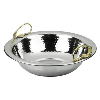 A&M Judaica 14" Stainless Steel Hammered Bowl with Bronze Handles