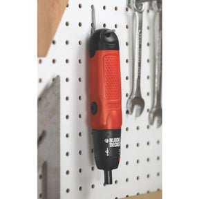 The Black & Decker AS6NG Cordless Screwdriver easily switches to manual screwdriving for more control. It allows you to simply change from driving screws to removing screws with forward/reverse switch. It can be stored on pegboard using integrated peg hole. Great for use in applications like Assembly, Installing mini blinds, Hanging curtain rods, Hanging pictures, and Installing light switches. Includes 6V Alkaline Cordless Screwdriver - AS6NG, Double-ended screwdriving bit (Phillips / Flat), (4) AA Batteries Imported.