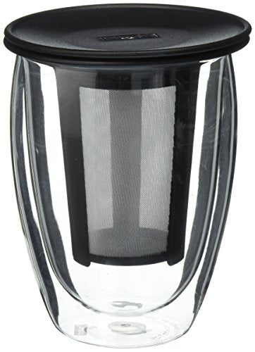 Bodum One Tea Strainer with Pavina Double Wall Glass Set, 12 Oz, Black