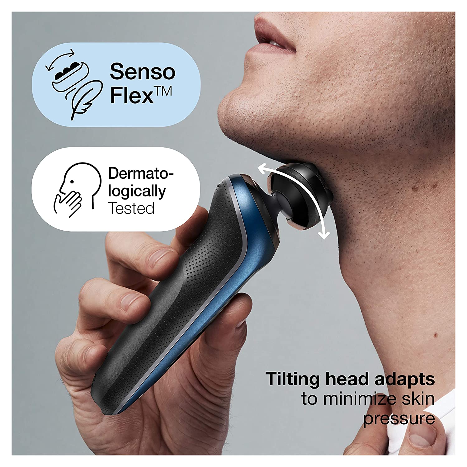 - Electric shaver for men with SensoFlex: the dermatologically tested swivel head adapts to minimize skin pressure for sensitive skin