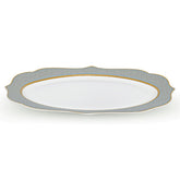 Brilliant Nova Bone China 14" Serving Oval Platter, Silver and Gold Scalloped Rim