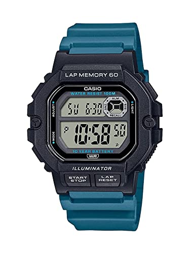 Casio LED Illuminator Men's Digital Sports Watch - Black Face, Aqua Strap