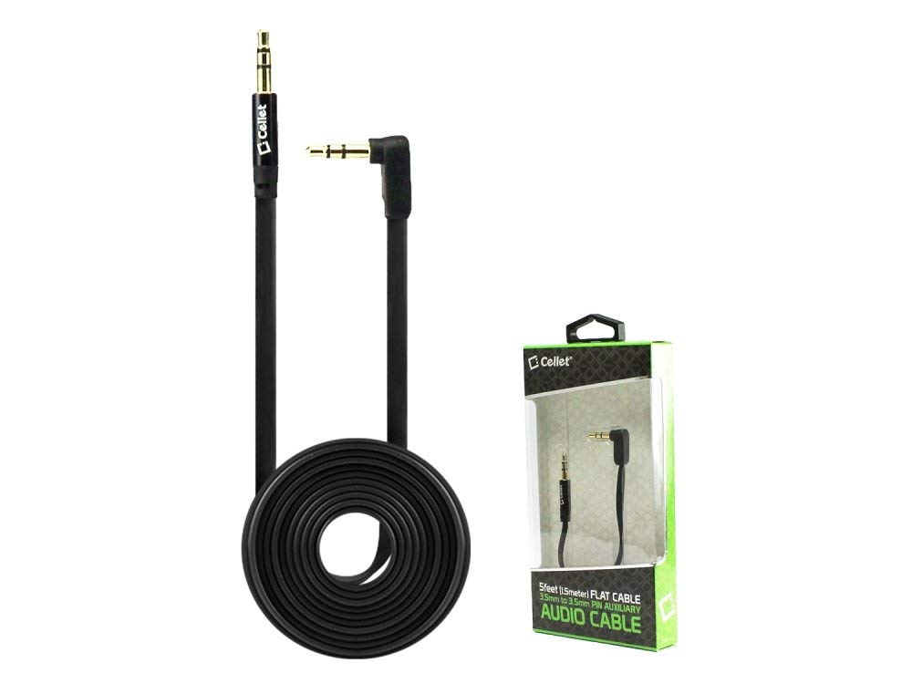 Cellet 5' Premium Flat Wire 3.5mm to 3.5mm Right Angle Pin Auxiliary Audio Cable AUX