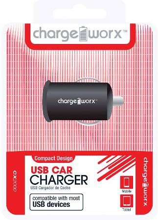 Chargeworx CX2000 1 Amp USB Car Adapter, Black