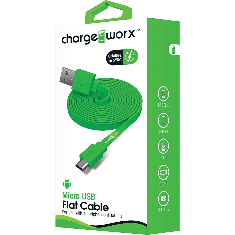 Chargeworx CX4537GN 3' Micro USB Flat Sync & Charge Cable, Green
