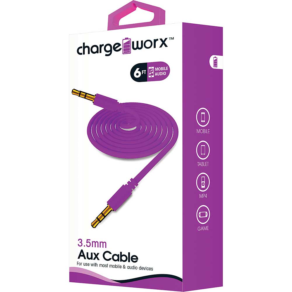 CHARGEWORX CX4541VT 6' Aux Audio Cable, Violet