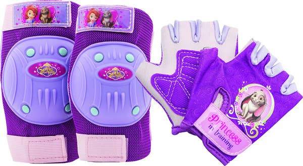 ChromeWheels Disney Sophia Kids Knee & Elbow Pad Set with Gloves