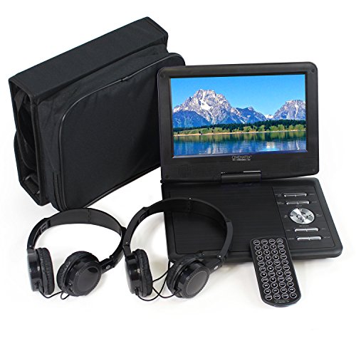 Enjoy your favorite movies, music, and pictures on the Cinematix 9" portable DVD player. Featuring a built-in rechargeable battery that provides extra-long playback, this versatile mobile-media device allows you to play movies and music from DVDs, CDs, USB drives, and SD cards, and includes a remote control, plus both wall and car power adapters. Also included are two over-the-ear headphones and a carrying case that can mount to a car headrest for convenient backseat theater viewing- perfect for the kids!