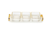 Classic Touch 3 Bowl Serving Dish White Tray with Glass Bowls Gold Trimmed