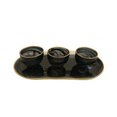 Classic Touch Black Alabaster Tray w/ 3 Bowls with Gold Trim - 12 x 3 in.