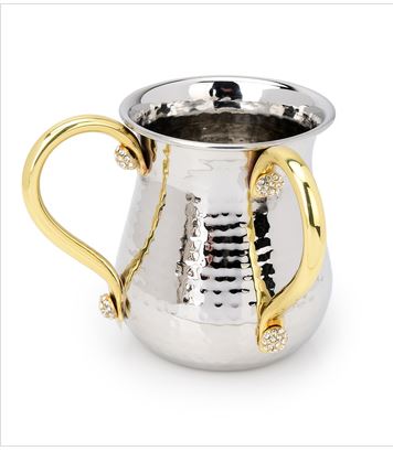 Classic Touch MJW60 Hammered Stainless Steel Wash Cup with Gold Handles