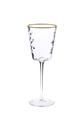 Classic Touch Set of 6 Pebbled Stemmed Water Glass with Gold Rim