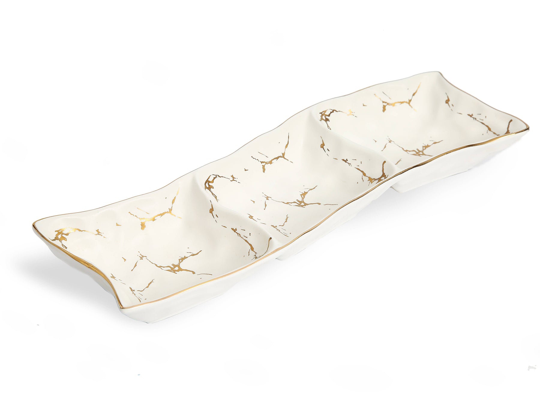 Classic Touch White Porcelain Relish Dish With Gold Design