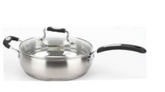 Europeware 3.1 Qt. 9.4" Cookware Stainless Apple Shaped Steel Fry Pan with Glass Lid, Black Handles COOKPOT