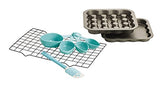 Measuring cups included are 1/4 cup, ⅓ cup, 1/2 cup and 1 cup. 16x10 inch cooling rack and printed spatula are also included