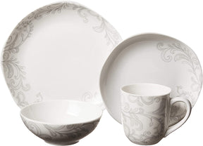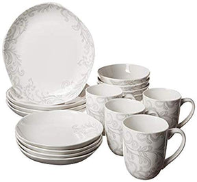- 16Piece dinnerware set includes 4 each of: 10-inch dinner plate, 8-inch Salad plate, 6-1/4 inch soup bowl, and 3-3/4 inch mug