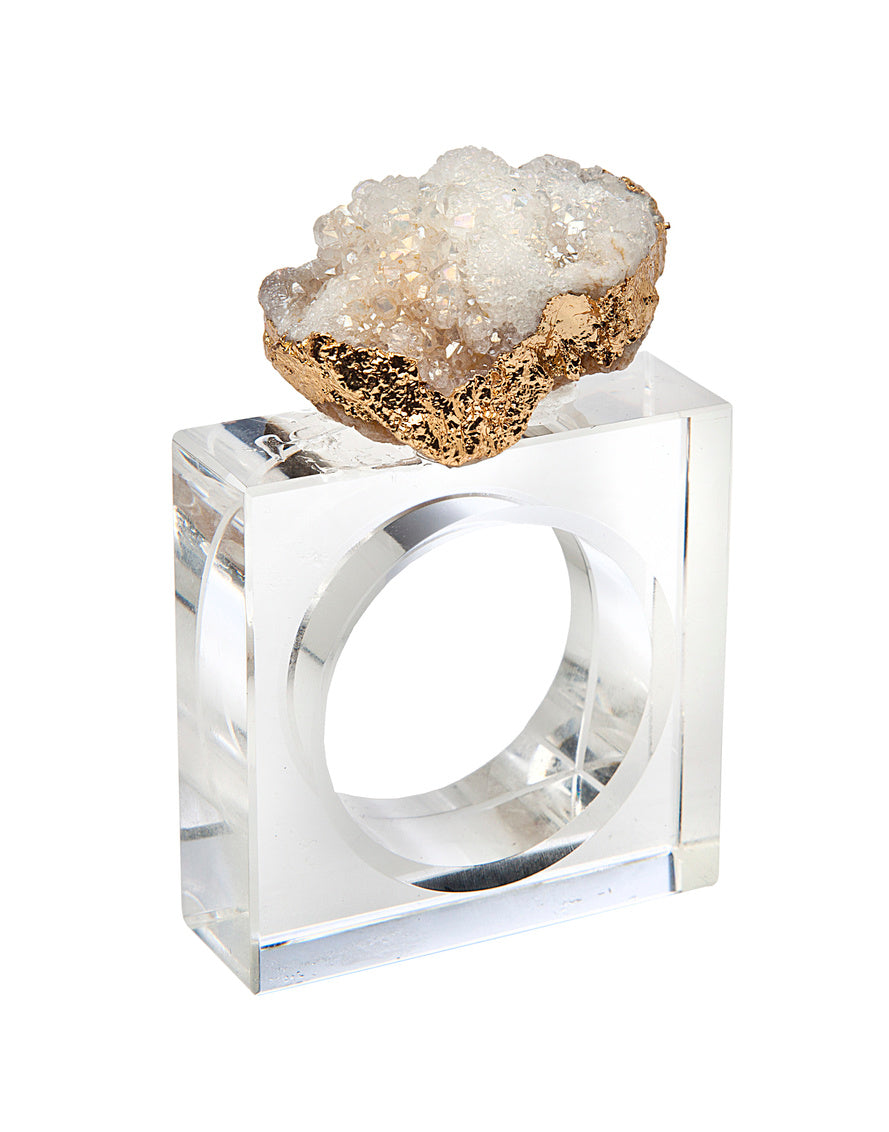 Godinger Geode and Acrylic Napkin Rings, White & Gold - Set of 4