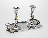 Godinger Leaf 3 Tone Candlesticks with Tray