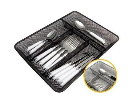 Organize your cutlery with this mesh tray. Made of lightweight metal, it's sure to last.