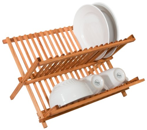 Folding dish rack, provides space for dishes to drain and dry after washing. Constructed of fine pine with rustic finish to ensure durability and stability. Folds for easy storage.
