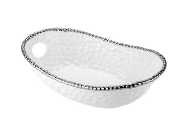 Joseph Sedgh Pebbled White Ceramic Serving Bowl with Silver Bead Rim