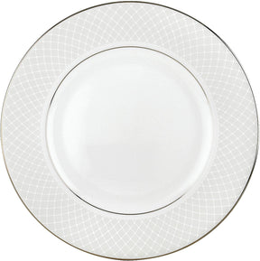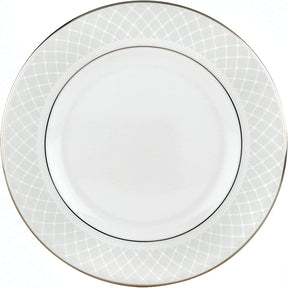 - A latticework motif resembling the intricacies of fine lace, graces the border of this white-bodied plate.