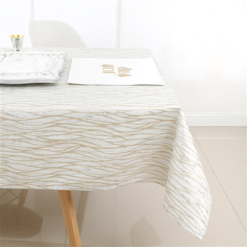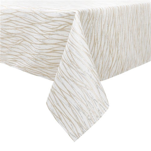 Majestic Giftware Jacquard Tablecloth, White/Gold/Silver Waves, (Various Sizes)