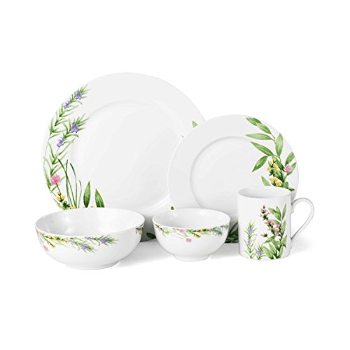 Mikasa 20 Piece Dinnerware Set, Herbal Fields - Service for 4 (10.75" Dinner Plates, 8.25" Salad Plates, 6.5" Soup Bowls, 4.5" Fruit Bowls, 12 Oz Mugs)