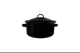 - NATURALLY NONSTICK: Stock Pots are carefully crafted with a core of carbon steel, then covered on the inside and outside with a layer of natural enamel. With these black and white speckled stoneware pots, you get the benefits of non stick without having to worry about chemicals Does not react to acidic foods, either.