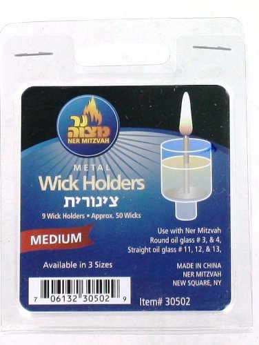 Ner Mitzvah Metal Wick Holders - Tzinoras Hazohov, Medium - Pack of 9