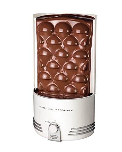 The Nostalgia CWF48WT chocolate fondue Waterfall has a 3 pound Capacity and creates a wall of a decadent chocolate that delivers a touch of elegance to any occasion. It features an auger that delivers the chocolate to the top of the Waterfall, then flows and is ready to be paired by dipping fruit pieces, breads, pretzels, and more under the flowing chocolate Waterfall . The simple turn-dial control, operates the motor and the heated base, which keeps the chocolate flowing. Use dark, semi-sweet, milk, White chocolate and even liqueurs.
