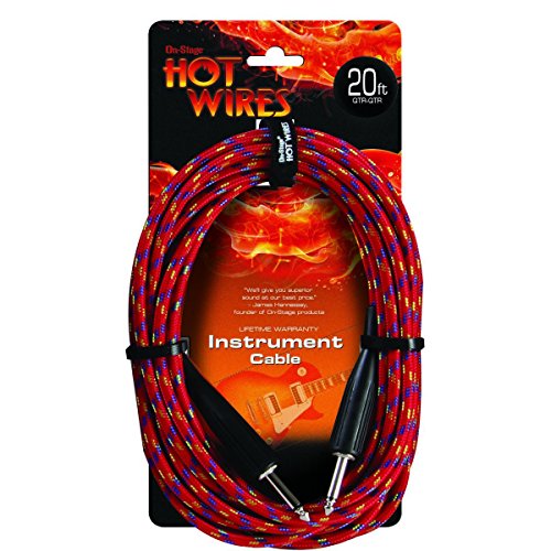 On Stage Hot Wires Guitar Instrument Cables 1/4 to 1/4 Inch Connectors - 20 Feet, Braided