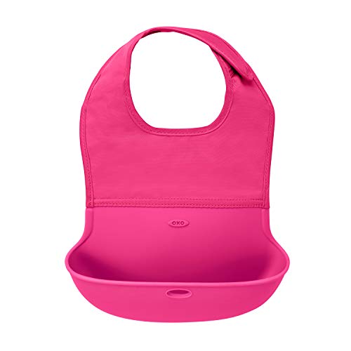 - Wide, soft, food safe silicone pocket effectively catches crumbs and bib length is designed so soft pocket does not interfere with high chair tray or table
