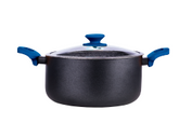 Kadra 6.5 QT Soltam Magma Black AND BLUE HANDLES Non Stick Aluminum Pot with Glass Lid COOKPOT