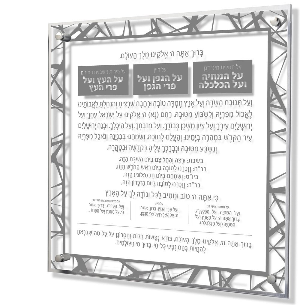 Waterdale Lucite Al Hamichya Plaque, Cracked Gray - Has nekudos and Borei Nifashos (18" x 18" 1/4" thick)