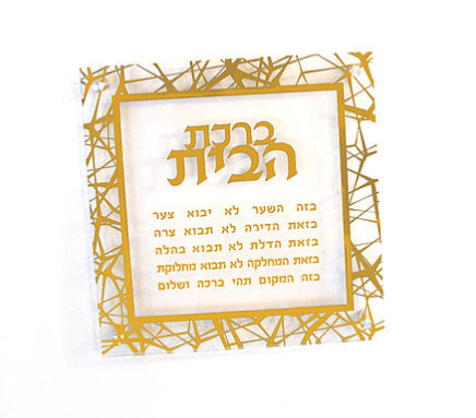 Waterdale Lucite Birchat Birchas Habayit Plaque, Cracked Gold (12" x 12" x 1/4" thick)