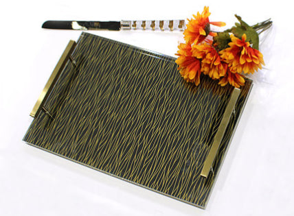 Waterdale Lucite Challah Board Tray, Gold&Black (11"x16")