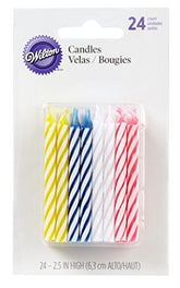 Wilton 2.5" Striped Spiral Birthday Candles, 24-Pack - Assorted Colors