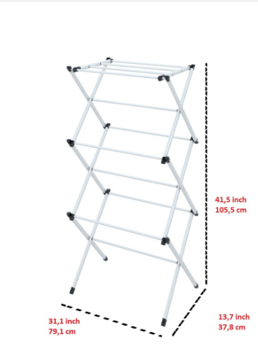 - DURABLE STEEL CONSTRUCTION WITH RUST-RESISTANT SILVER-COATED FINISH helps eliminate stains and mildewise STURDY STAINLESS STEEL COATED RODS Over 49 feet of drying space, folds flat for quick, easy storage.